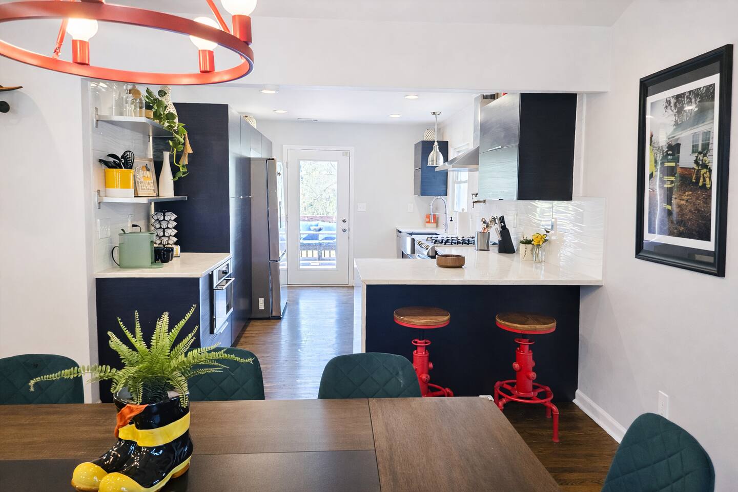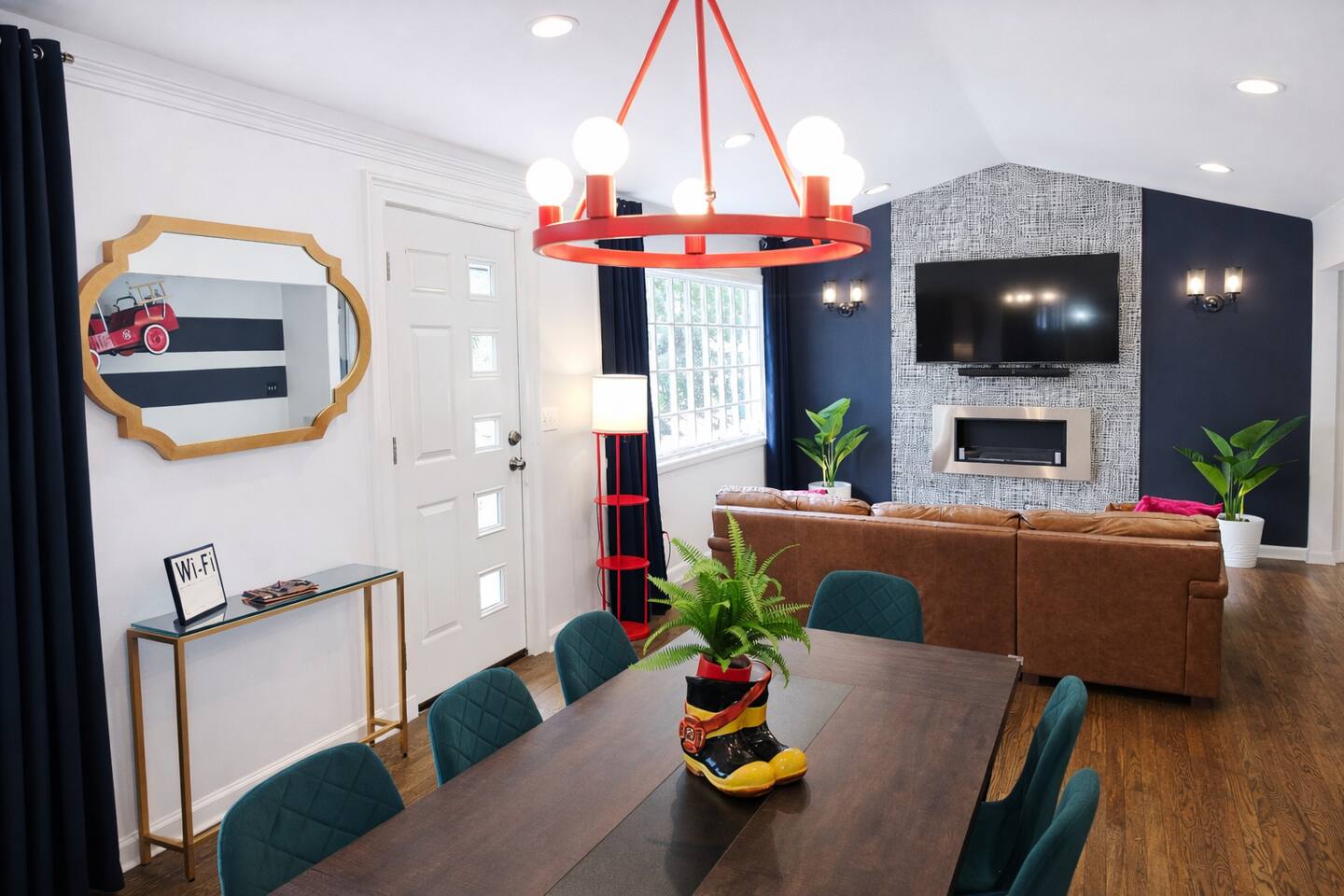 🚒 Fire Escape – Where comfort sparks experience. Minutes from downtown ATL, this firehouse-inspired getaway is a full experience. Features a basement lounge with big-screen, bar, pool table, cozy bedrooms and a king-size retreat, every space keeps the vibe going. Step outside to relax, grill, or unwind, with front and back outdoor seating and a backyard trampoline adding a playful touch. Whether you’re here to recharge or turn up, this stay, is bold, comfortable, and unforgettable.