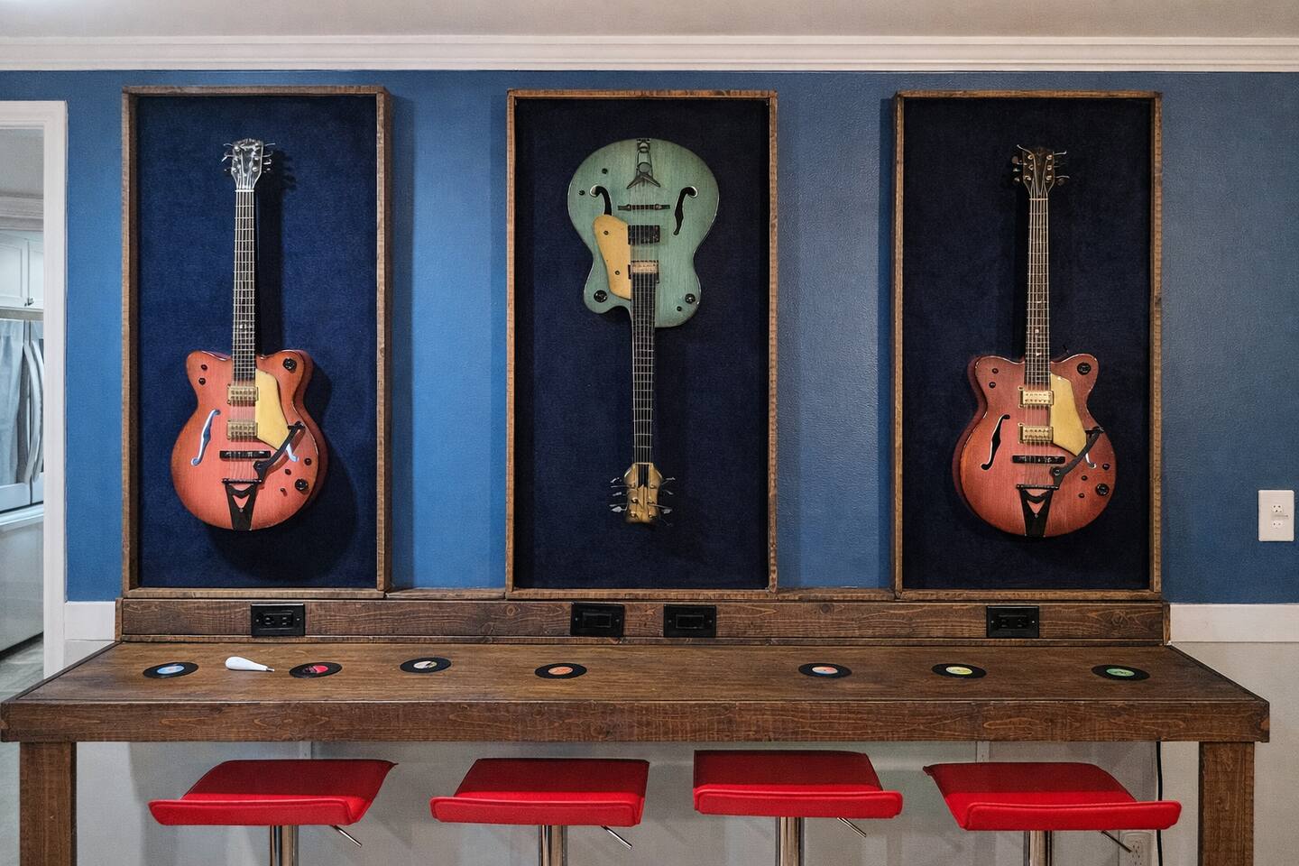 🎹 Interactive music zone: play the digital piano, spin a record, or pop in a cassette for that throwback sound 🔊 Bluetooth sound system throughout for full vibe control 🕹️ PS4 gaming console with popular titles for family-friendly fun ⚽ Foosball table for some friendly competition 🛋️ Relaxation zones: plush bedding, blackout curtains, and cozy décor 🌿 Outdoor lounge: seating area with a firepit and charming swings — perfect for morning coffee or evening hangs 🐾 Family + dog-friendly, so everyone (including furry friends) can enjoy the stay 🍳 Fully equipped kitchen with stylish finishes and modern appliances